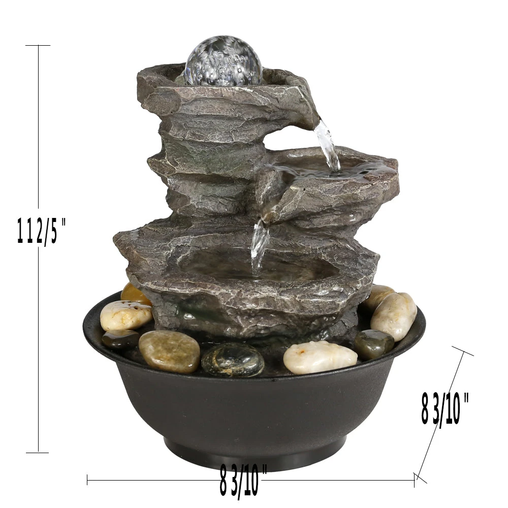 4-Tiered Cascading Resin-Tabletop Indoor Fountain with Glass Ball