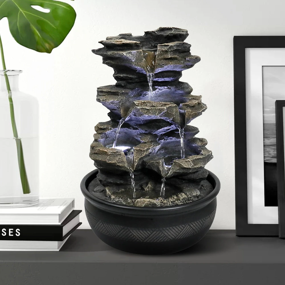 Resin Cascading Indoor Tabletop Fountain with LED Lights-15.7″H
