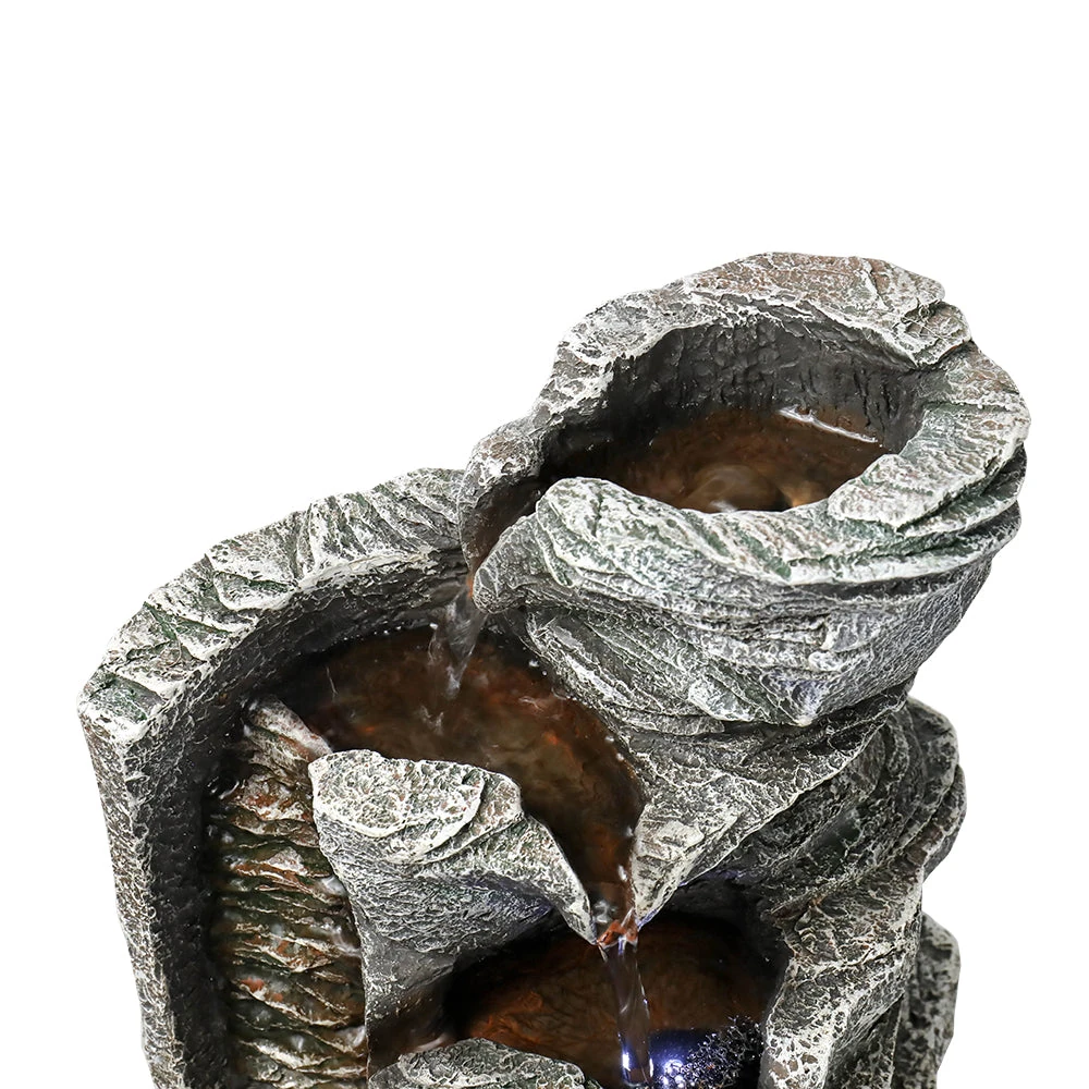 As daylight fades, the magic of this fountain truly comes to life. Integrated, energy-efficient LED lights are strategically placed within the rock structure, casting a soft, enchanting glow through the flowing water. The lights typically cycle through a spectrum of calming colors—soft blues, tranquil greens, warm whites, and gentle purples—creating a dynamic and mesmerizing visual display. This feature transforms your fountain into a breathtaking nightlight or ambient mood setter for evening relaxation, dining, or entertainment.