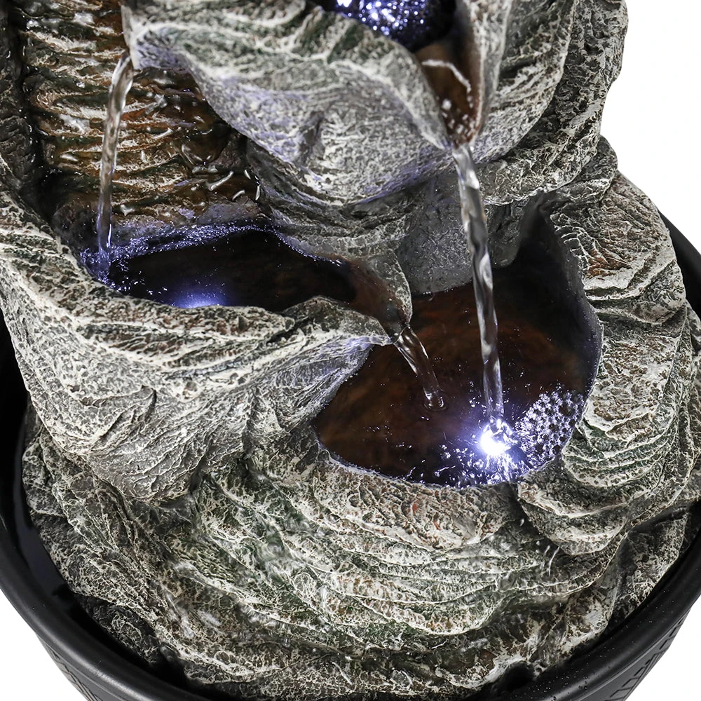 Resin Stacked Rock Tabletop Indoor Fountain with LED Lights- 15.7″ H
