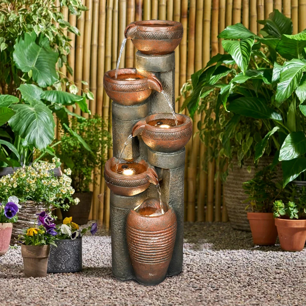 Elevate your outdoor sanctuary with our 39.7”H 5-Tiered Garden Fountain. This stunning centerpiece combines the timeless elegance of cascading water with the modern touch of warm LED lighting. Crafted from durable, weather-resistant materials, it creates a serene atmosphere for relaxation and entertainment. Easy to assemble and maintain, this fountain transforms any patio, garden, or yard into a peaceful retreat. A new statement piece for your home.