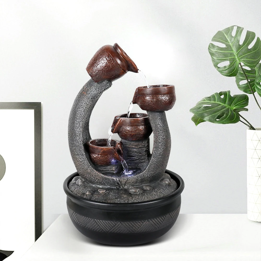 Don’t just decorate your space—enhance your quality of life within it. Our 5-Tiered Resin Indoor Tabletop Fountain with LED Lights is waiting to bring the serene beauty of a cascading waterfall into your home. Experience the calming visuals, the soothing sounds, and the enchanting glow for yourself. Click ‘Add to Cart’ now and take the first step toward transforming your everyday environment into a personal retreat of peace and style.
